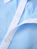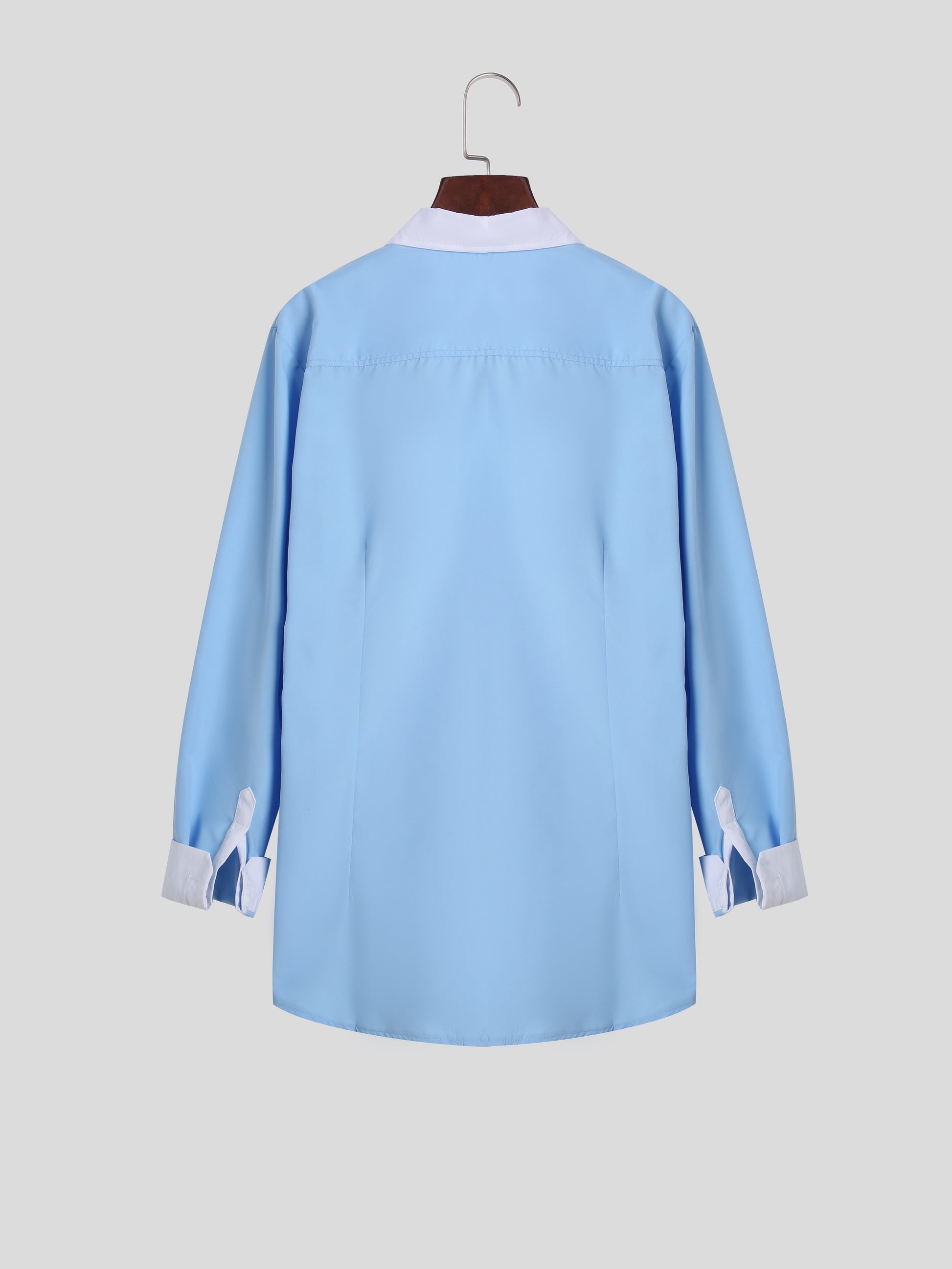 This shirt features a striking blue and white color contrast without being jarring. The white at the collar, front and cuffs creates a visual contrast with the light blue of the main body. It not only retains the high-end feel of the shirt but also breaks the monotony of solid-colored shirts, enhancing the design and fashion sense. It can instantly elevate the layering of the overall outfit and easily become the focus of the crowd. Matching style