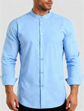 This stand-up collar shirt features a fitted silhouette that can well outline a man's body lines. It is neither too tight and cramped, nor does it show a neat figure. It is suitable for wearers who pursue a sharp and sophisticated look. Whether for daily commutes or more formal occasions, the silhouette can enhance the overall spirit. "Matching style.